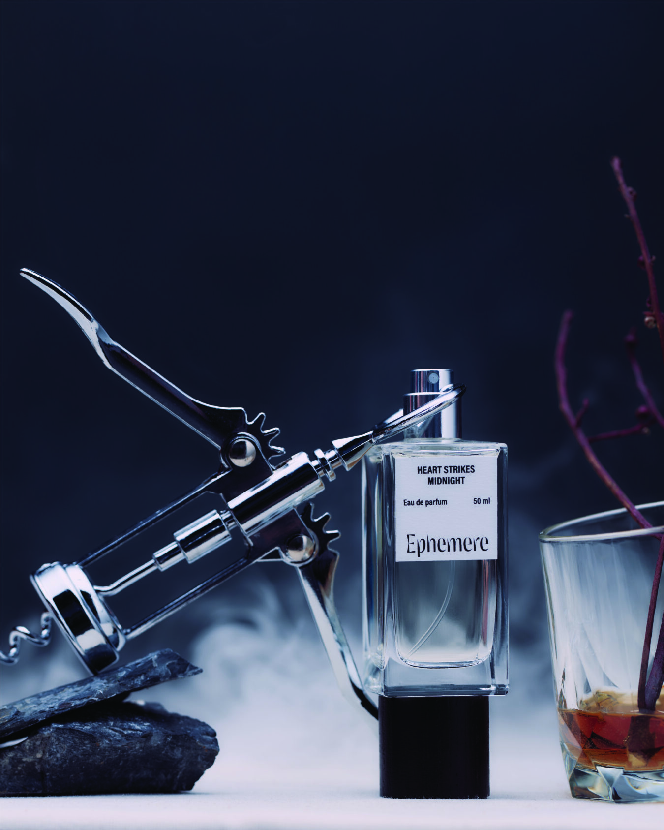 ‘Heart strikes midnight’ is an aromatic journey of emotions that teeter between joyful ecstasy and the melancholy of a love lost in the darkness of night. This blend starts innocently just as the night did with pink pepper, elemi, and grapefruit, then ramps up the heat with saffron and paprika to mimic the warmth of your body. The journey ends with a layer of tobacco, leather and musk to whet your appetite for more to come.